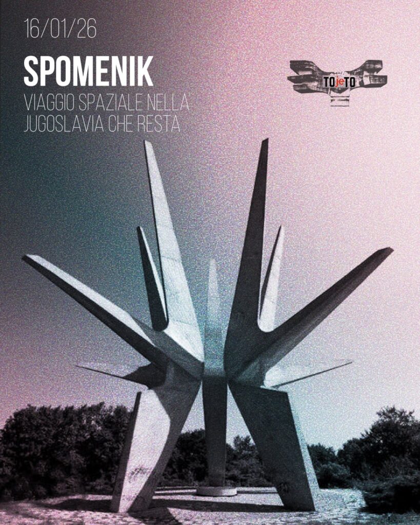 Venerdì 16 gennaio 21:30 SPOMENIK Viaggio spaziale nella Jugoslavia che resta (Bottega Errante Edizioni 2025) Con l’autore Gianni Galleri e lo storico Erik Gobetti Con l’associazione TOjeTO